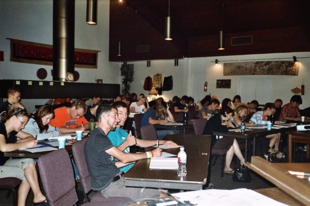 Each lesson is made up of a three hour lecture with one break time. Students would take a rest, taking snacks outside the Indian Hall. This snap picture was taken on July 7, when the topic was World Christian Discipleship. |